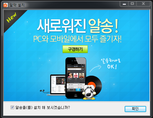 설치가 완료된 이후에도 바로 확인을 누르게 되면, 알송이 설치가 됩니다.