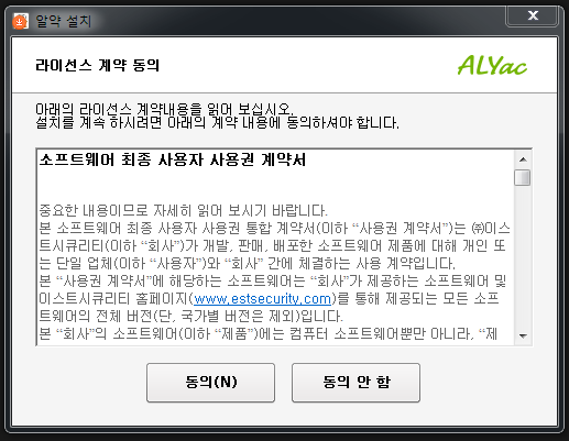 파일 설치 시 위와 같이 라이선스 계약동의가 표시되면 동의를 눌러 다음단계로 진행합니다.