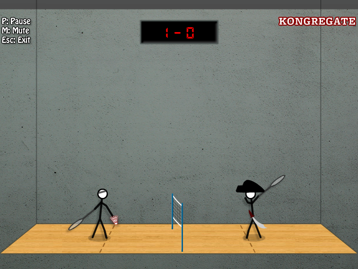 게임 플레이 화면입니다. 가운데 네트를 두고, 양쪽에서 캐릭터가 배드민턴을 치는 게임입니다.