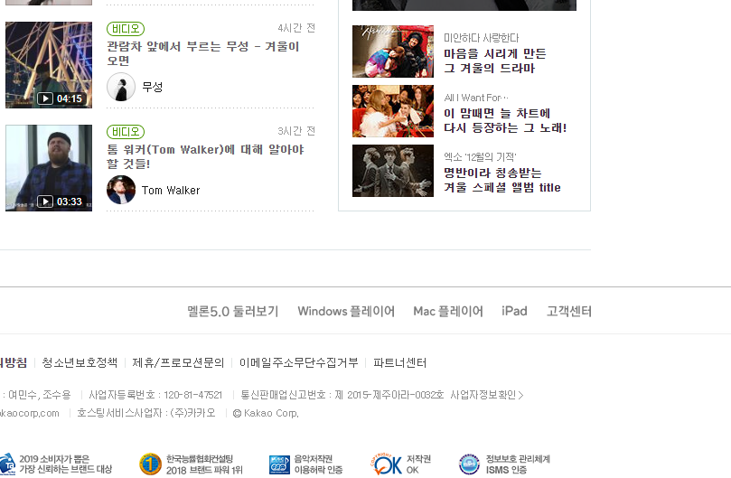 멜론5.0 둘러보기 옆에 Windows플레이어, Mac플레이어, iPad, 고객센터 가 보이는데요.