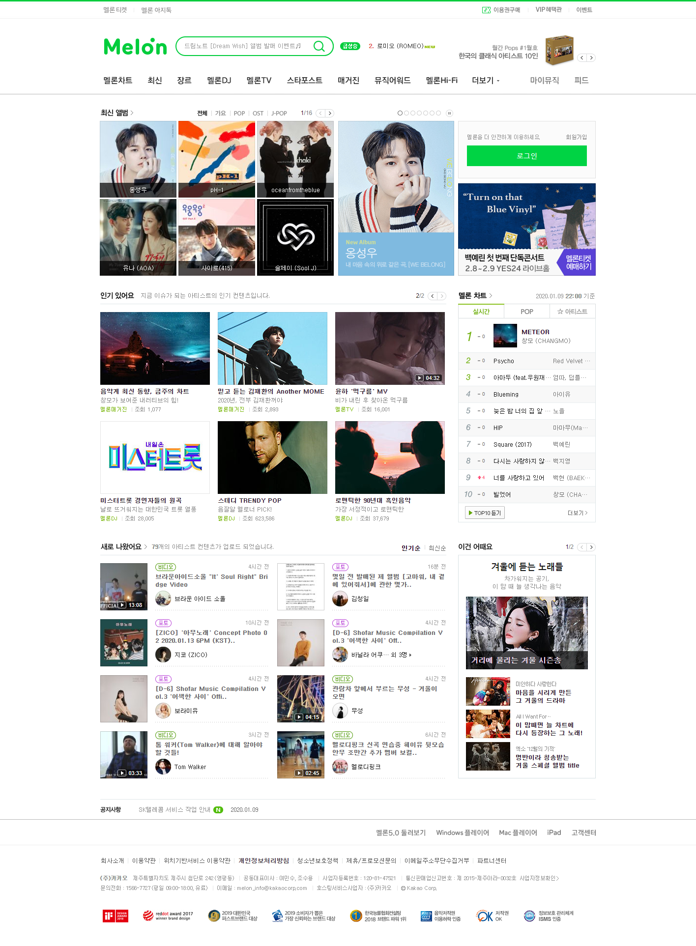 멜론(Melon)은 국내 점유율 1위 음원사이트로 약 40%대의 점유율을 가지고 있습니다.