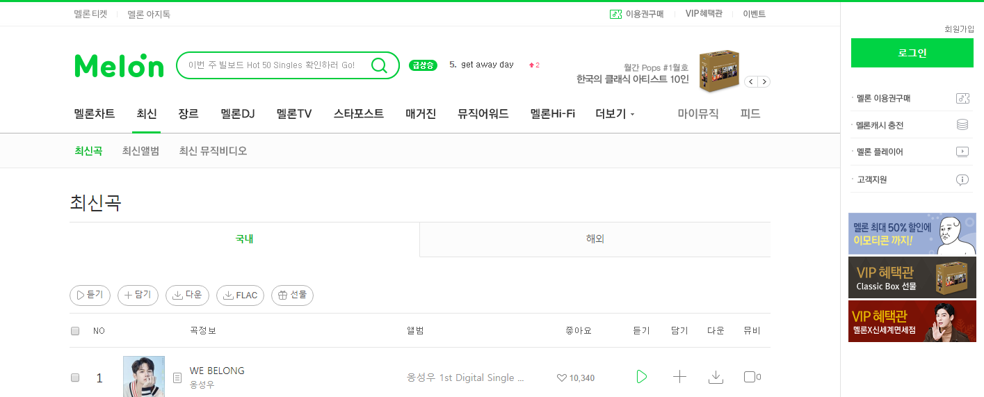 위 링크를 선택하면 멜론 웹사이트에 접속하실 수 있습니다.