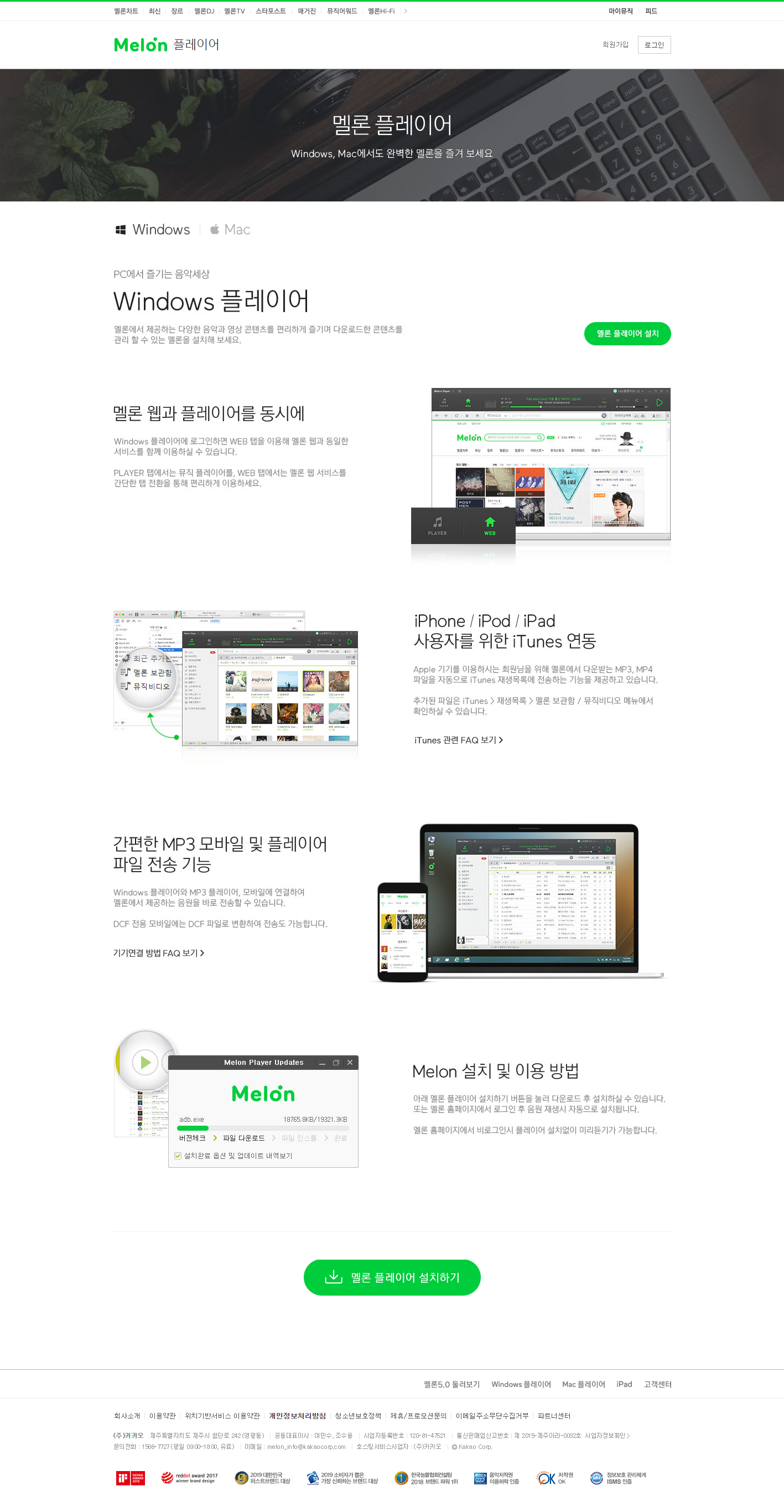 맥 플레이어를 선택하면 위와 같은 페이지로 이동이되며, 동일하게 멜론 플레이어 설치하기 버튼을 누르면