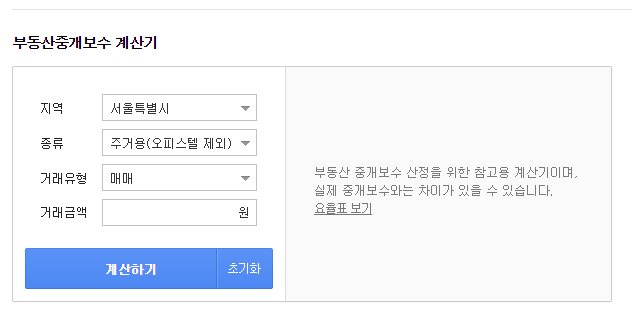 부동산 중개보수 요율표가 있지만 계산이 어렵거나 좀 더 간단하게 금액을 확인해 보고 싶다면