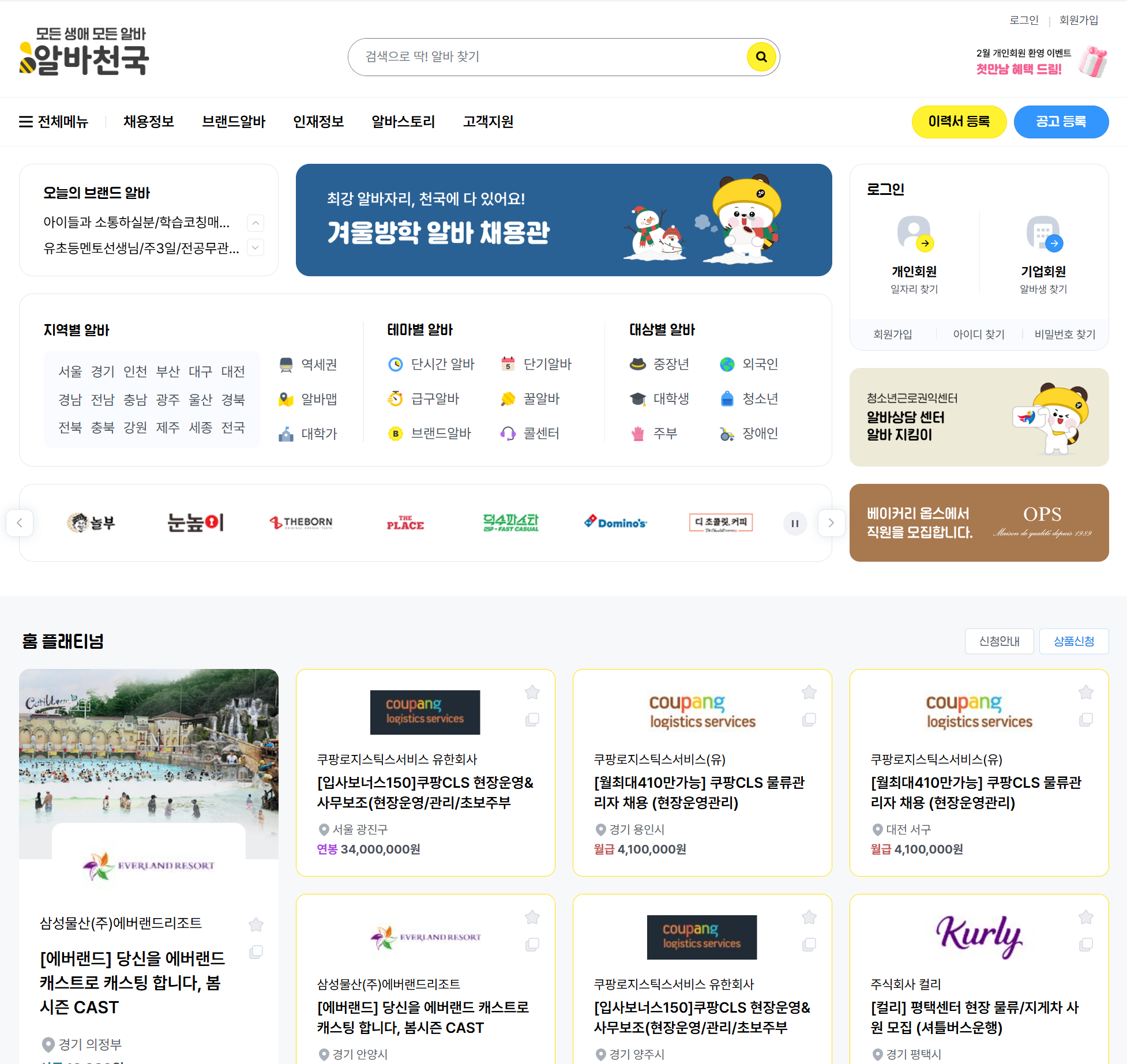 알바천국은 대한민국 대표 아르바이트 채용 플랫폼으로, 다양한 업종과 지역의 아르바이트 정보를 제공하는 사이트입니다. 사용자들은 간편하게 구인·구직 공고를 등록하고, 자신에게 맞는 일자리를 찾아 지원할 수 있습니다. 특히, 맞춤 검색 기능과 다양한 필터를 통해 원하는 조건의 아르바이트를 쉽게 찾을 수 있다는 점이 큰 장점이에요.